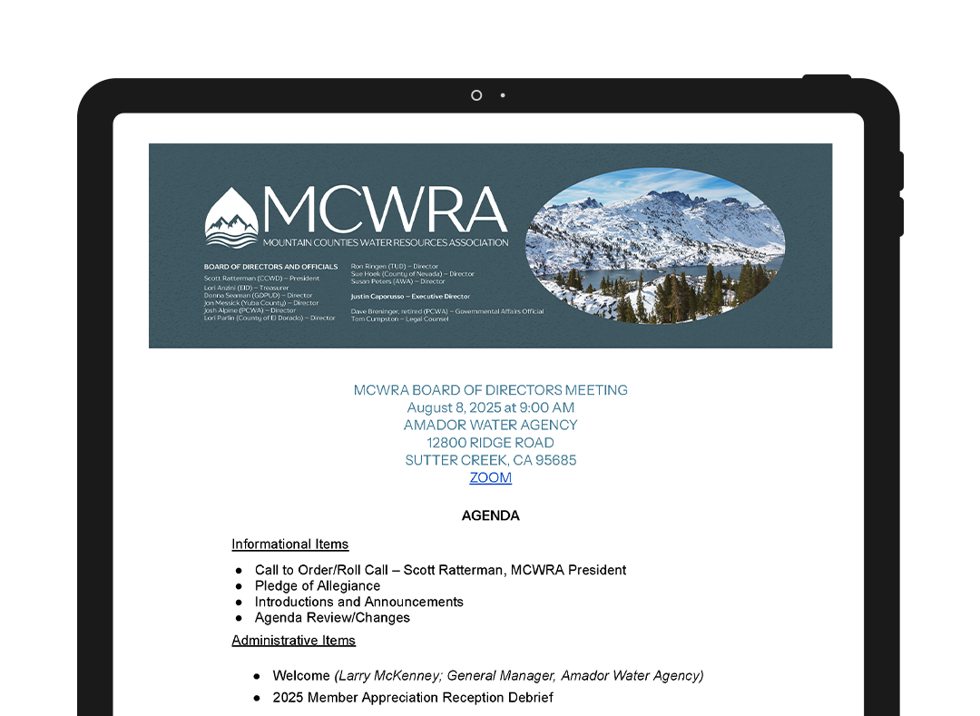 If you have any questions, or would like additional information, feel free to contact Justin Caporusso, Executive Director, at (916) 412-0571 or via email at executivedirector.mcwra11@gmail.com.